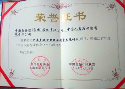 The IURE was granted the “2017 Outstanding Informatization Project Awards for China Insurance Industry” in recognition of its business innovation capabilities and technical prowess of solving the traditional problems of insurance industry with new technologies, thereby advocating the underwriting concept of China Re Life, enhancing the brand influence of the Company and having a great advertising effect for promoting the IUES to the primary insurance companies.